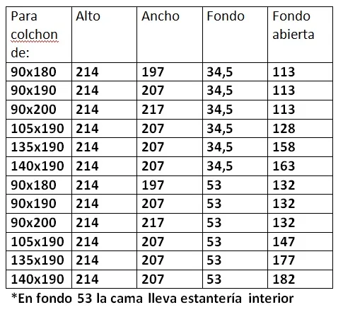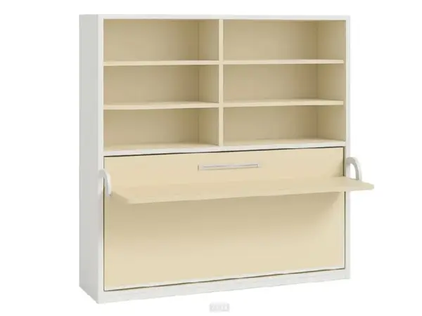 Cama abatible horizontal con escritorio incorporado y unas prácticas estanterias a modo de libreria,ideal para ahorrar espacio.Para colchón de 90×190,para otras medidas ver tabla.