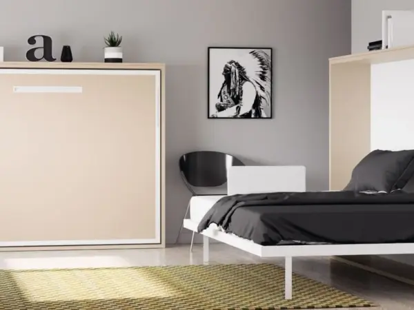 Cama abatible horizontal con apertura de patas automáticas y sincronizadas.