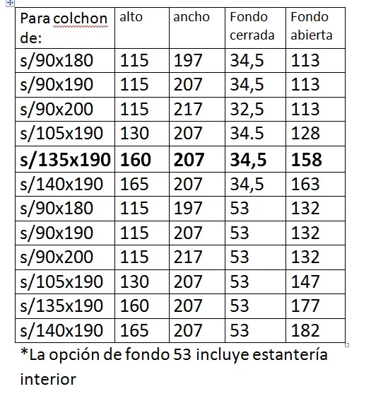 Precio correspondiente para colchón de 135 x 180 o 190.Opción en medidas de 80-90-105-140-150.