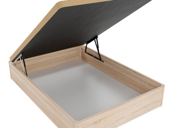 Tapa con estructura tubular de acero, bastidor metálico de 40×30, tablero fabricado en aglomerada de 8mm, 4 válvulas de aireación tech , 5 barras de refuerzo , cajón fabricado en aglomerado de 30mm, fondo tablero 5mm, 4 patas esquineras reforzadas en MDF, amortiguadores hidráulicos en los laterales.