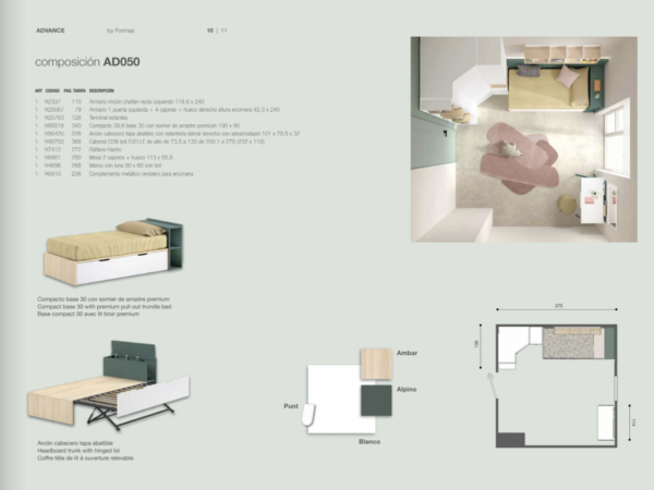 Arcón cabecero tapa abatible con estantería lateral derecha con salvarrodapié 101 x 79,5 x 32. Incremento USB.