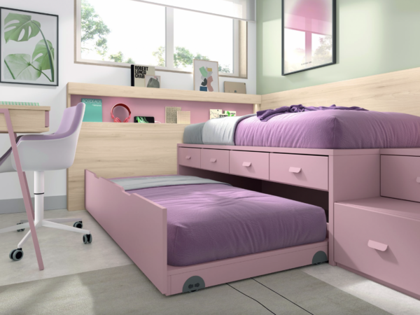 Compacto bicama 57 base 30 con 4 cajones bajos + nido base arrastre 190 x 90