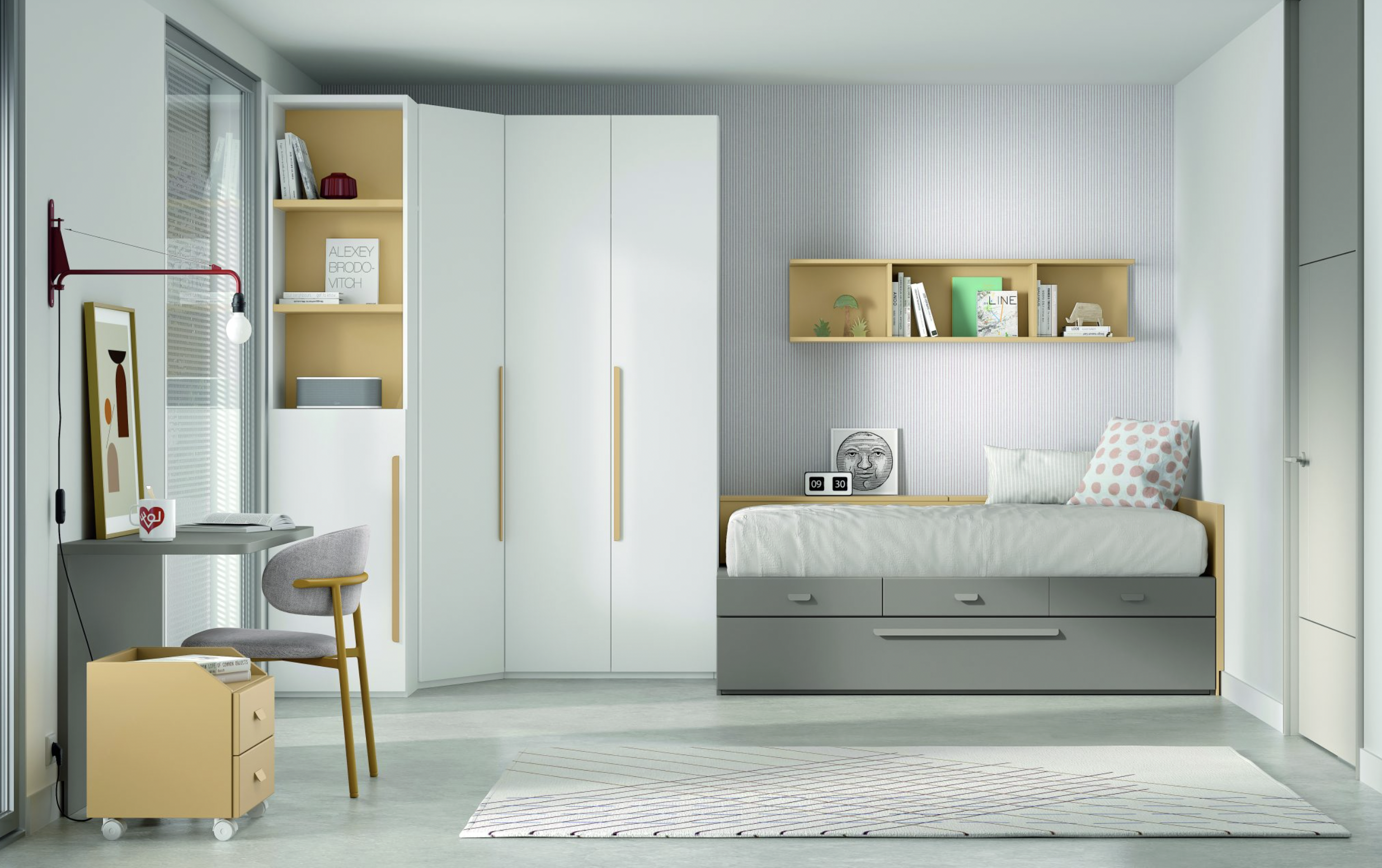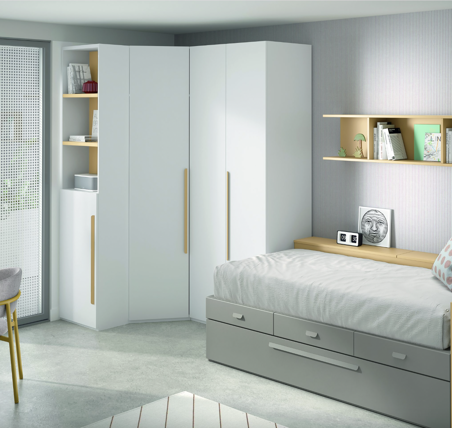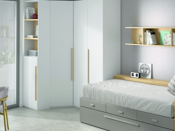 Armario rincón chaflán-recto puerta plegable derecha 1 estante altillo 170,3 x 240