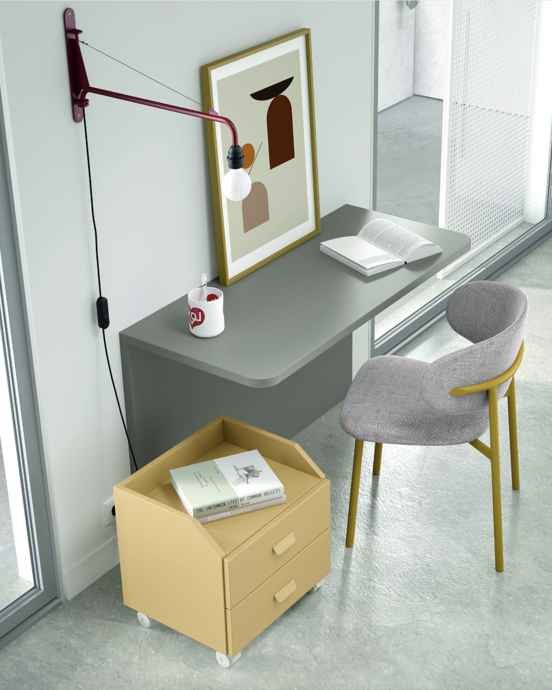 Mesita chaflán 2 cajones con ruedas 47,5 x 40,5