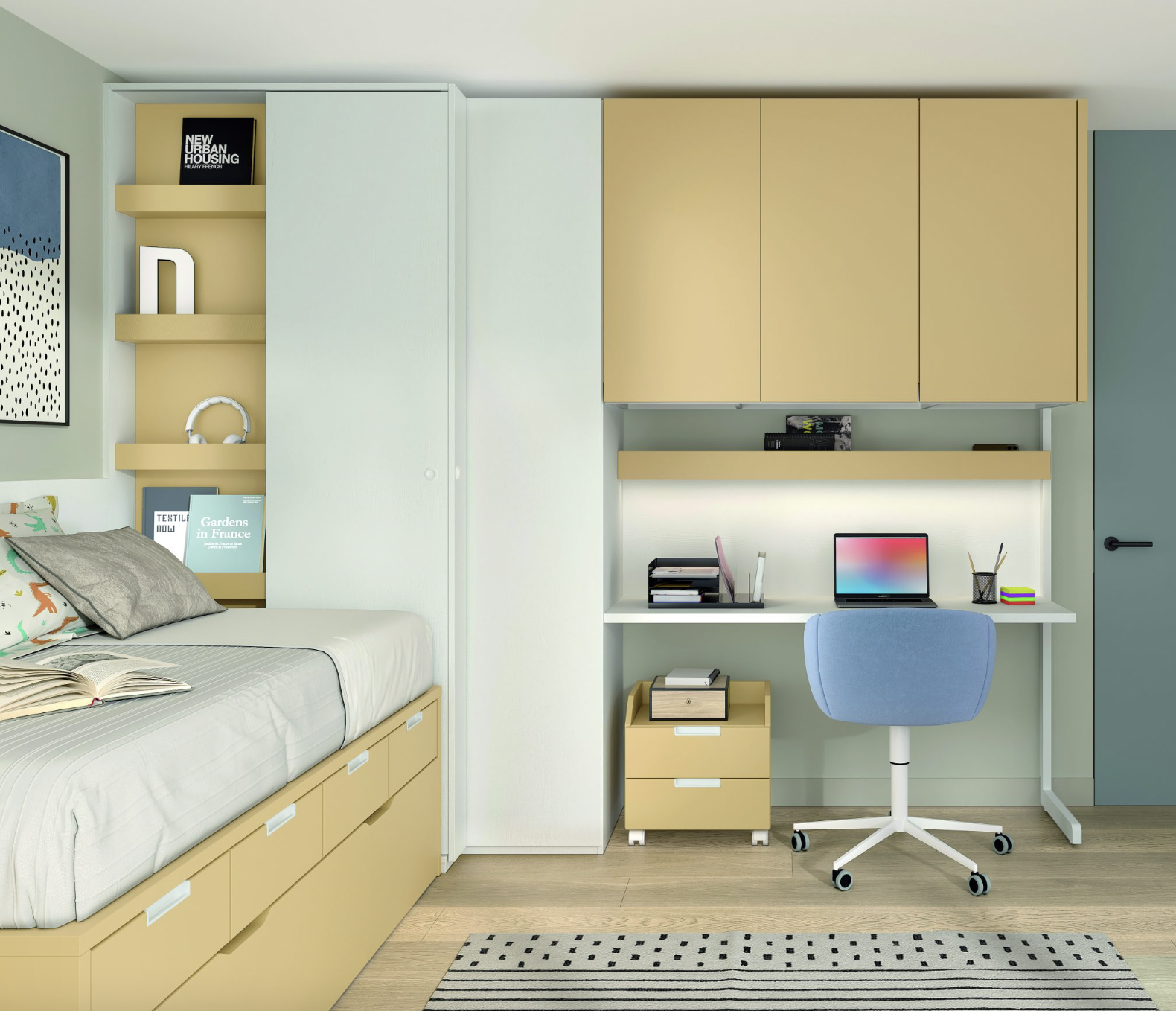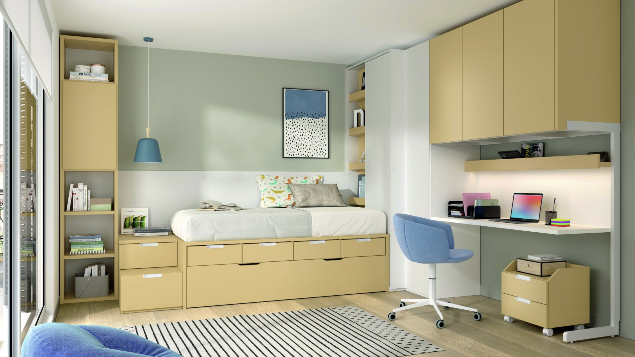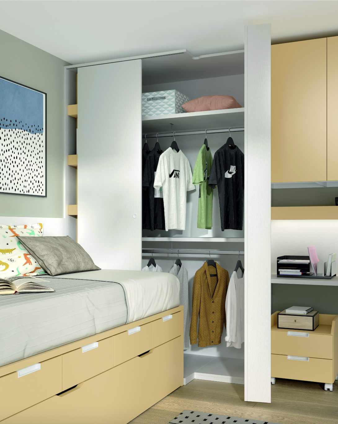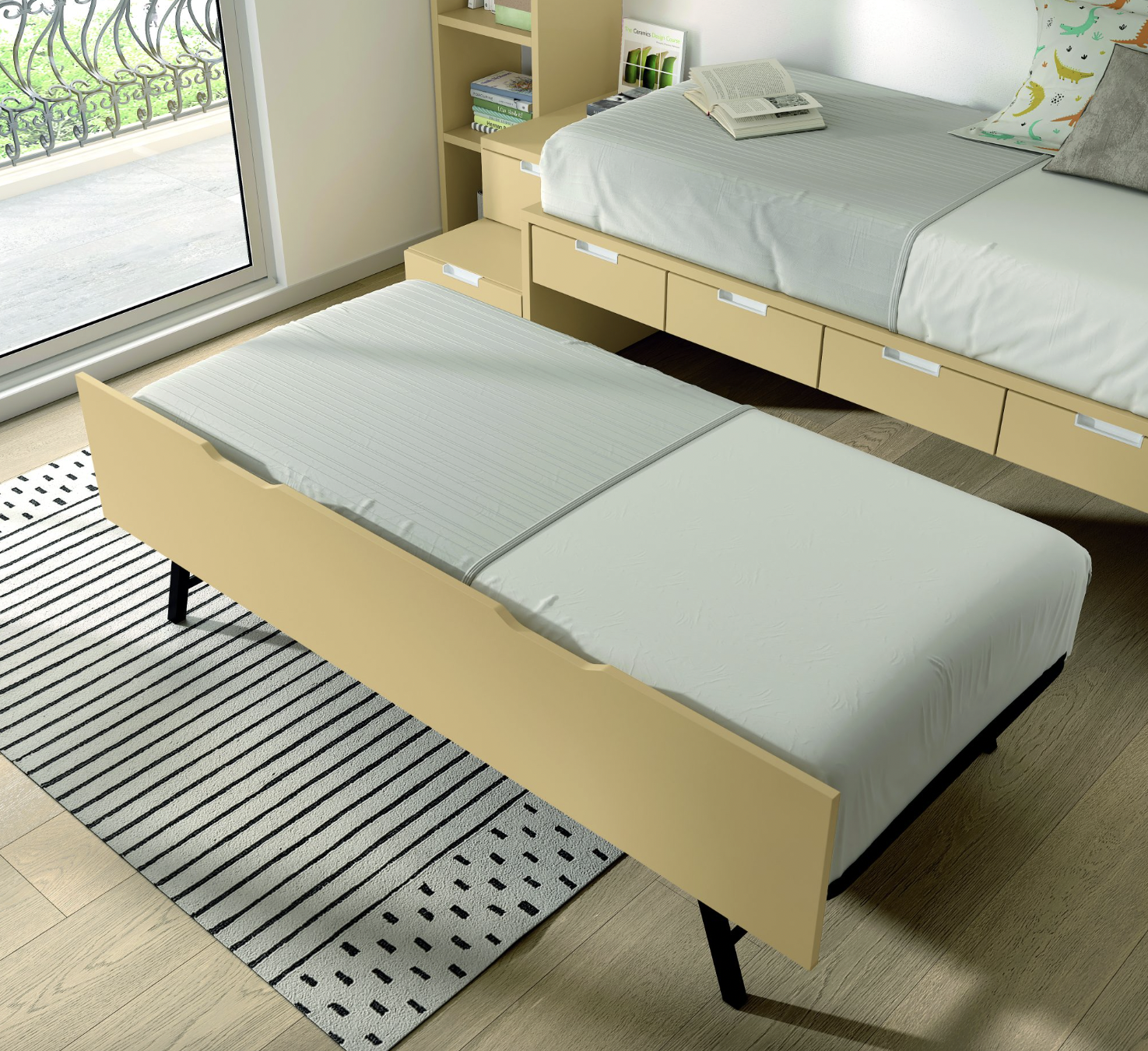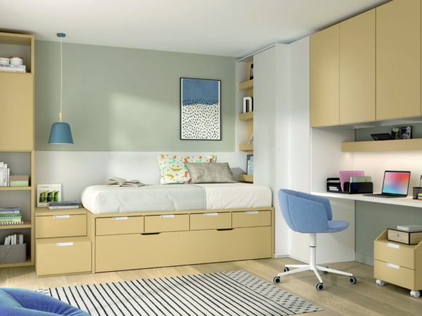 Compacto bicama 57 base 30 con 4 cajones bajos + somier de arrastre 190 x 90