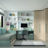 Armario rincón reducido estantería izquierda y puerta L batiente 149,5 x 240