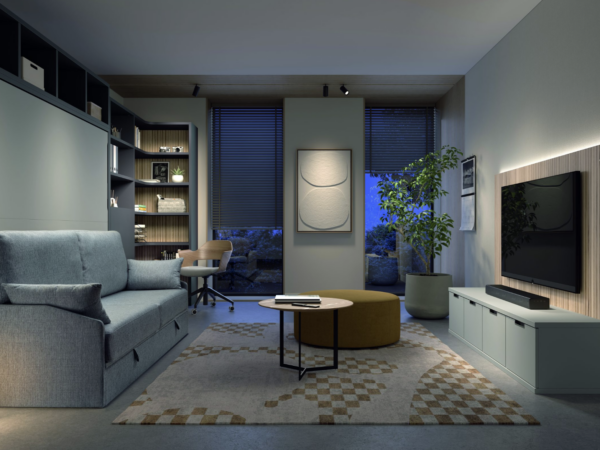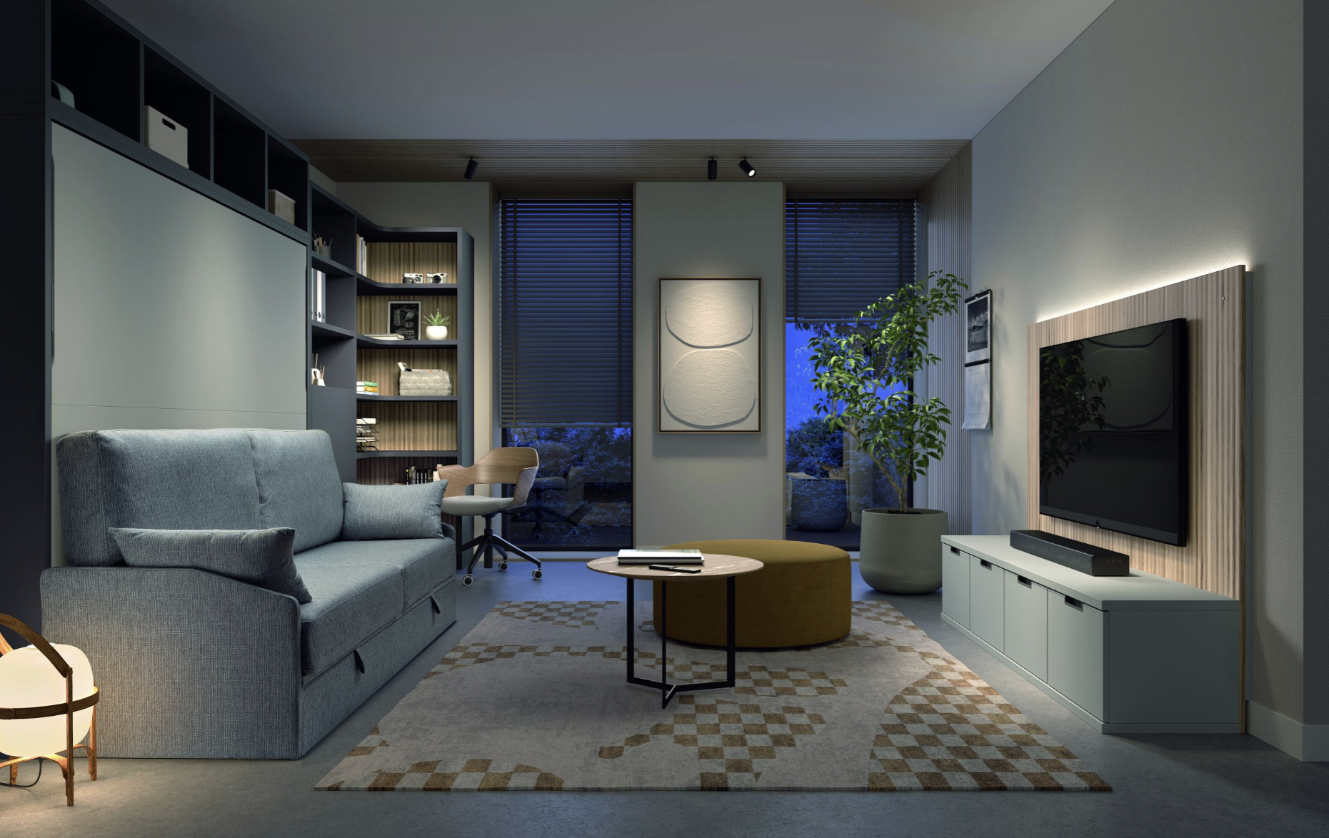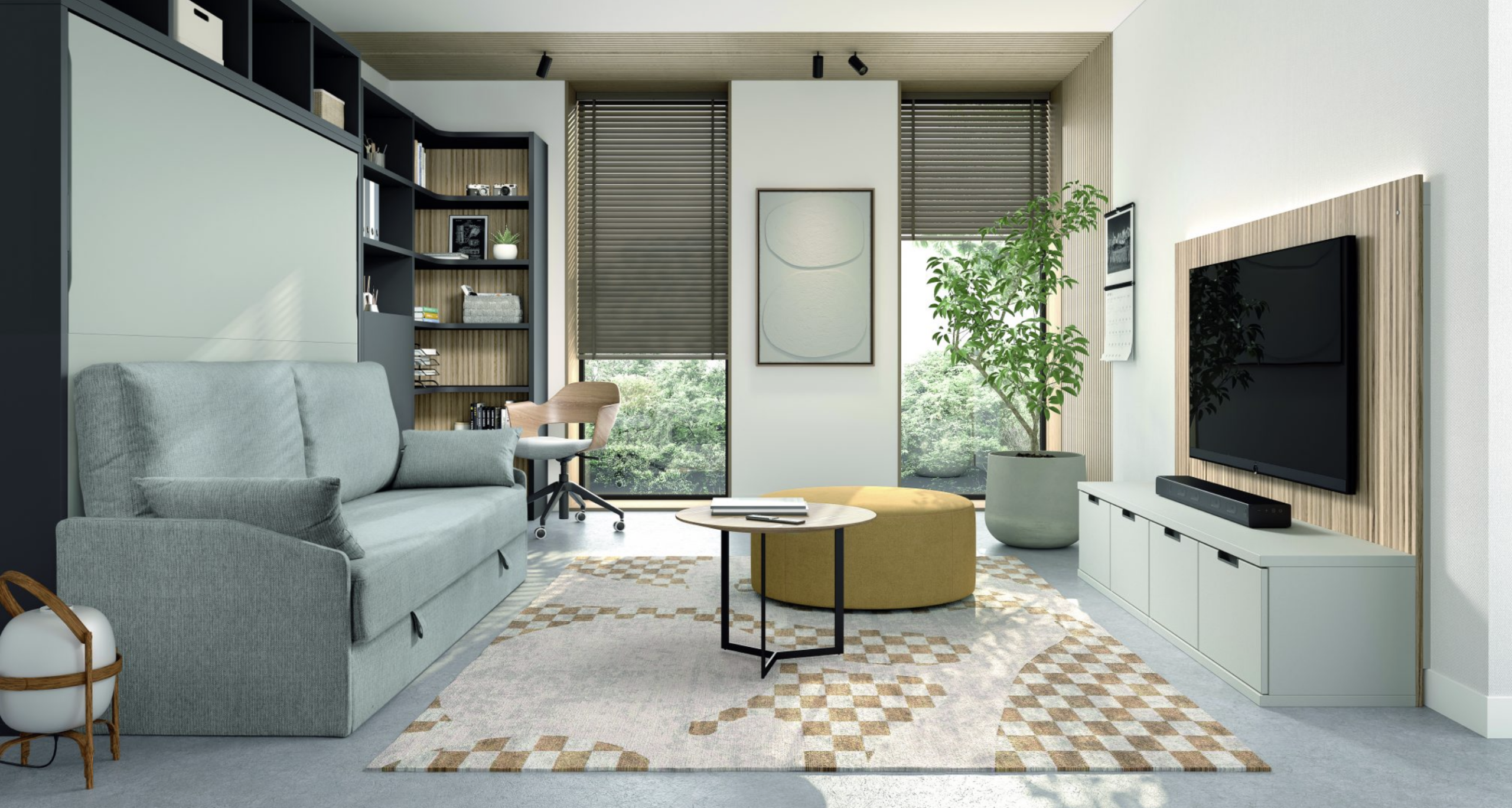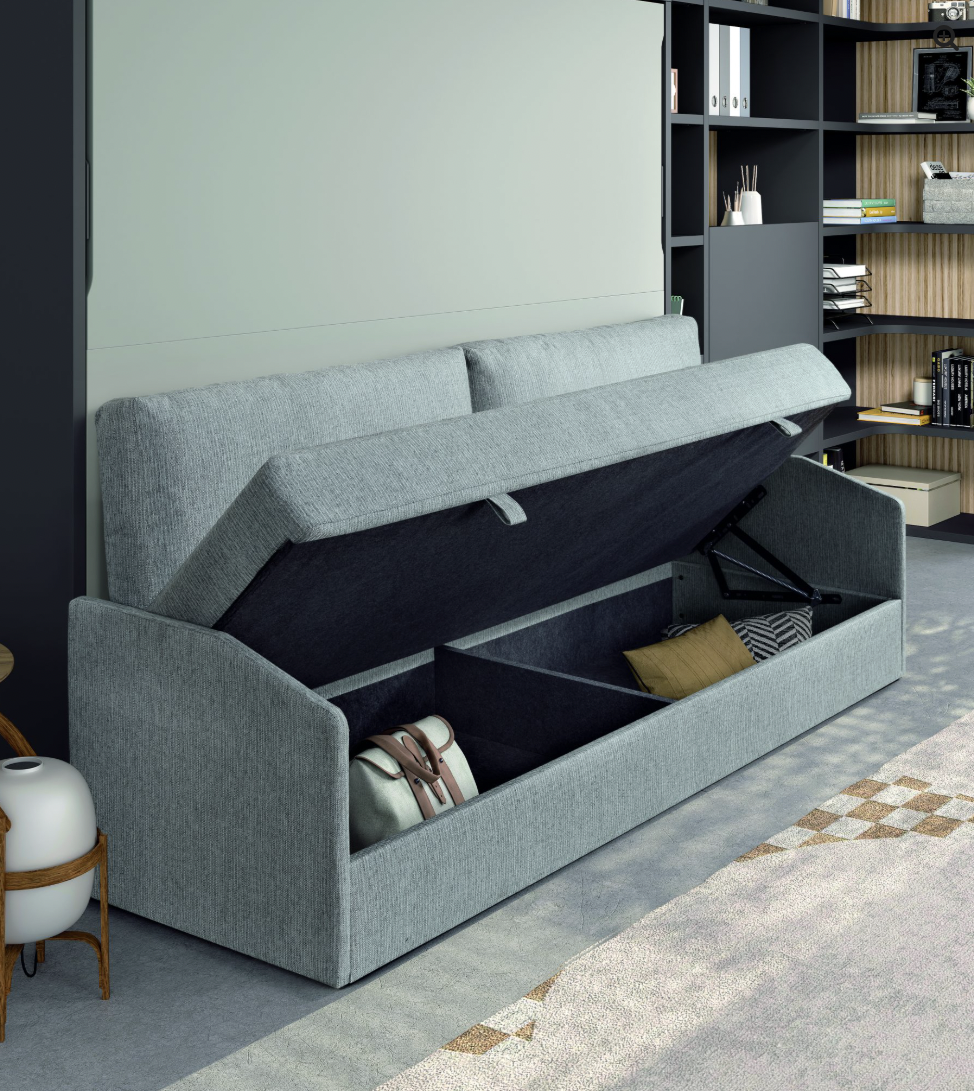Cama abatible horizontal fondo 57,5 con sofá canapé 190 x 150