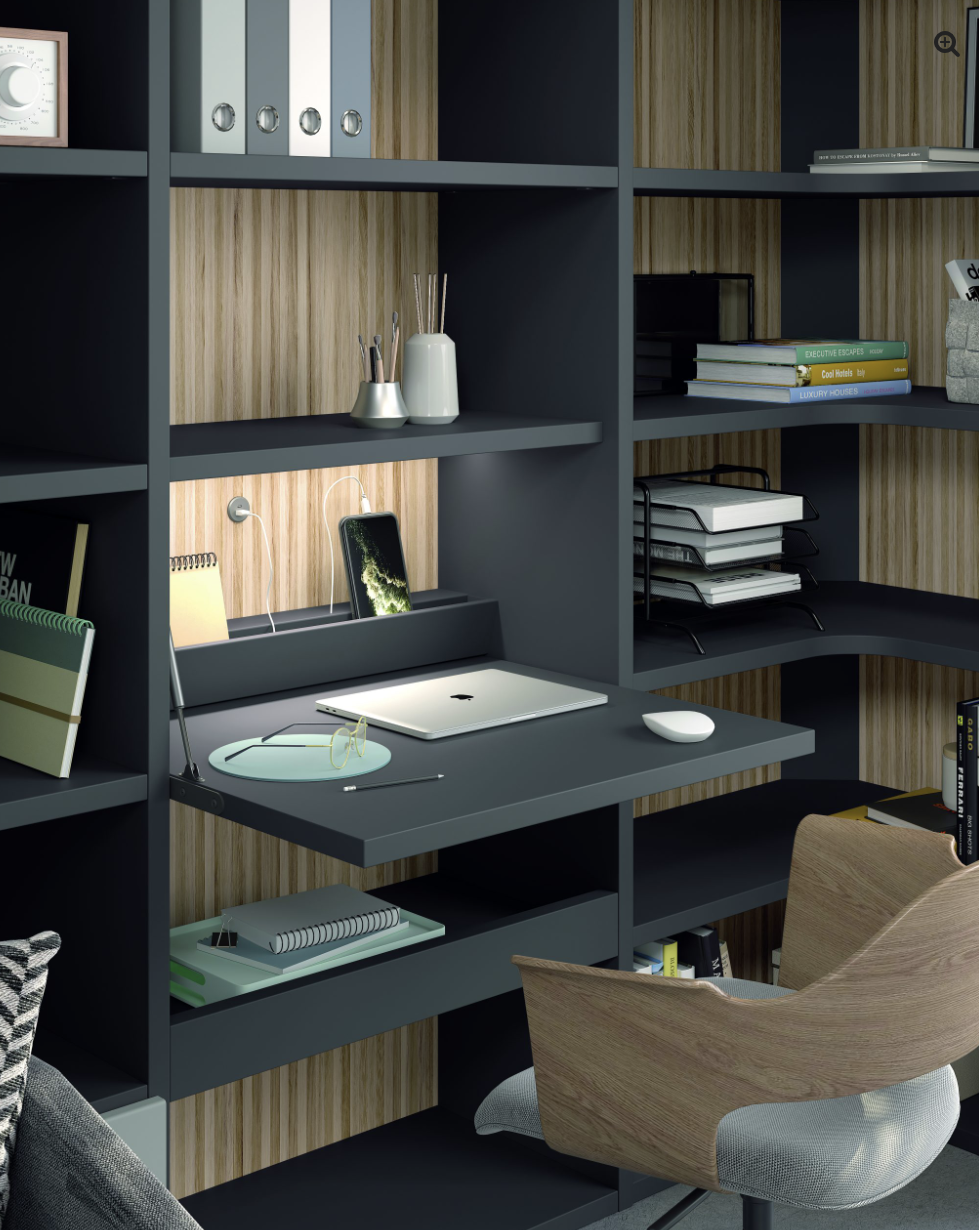 Cuerpo central librería con mesa abatible alto 240 x 81 x 42