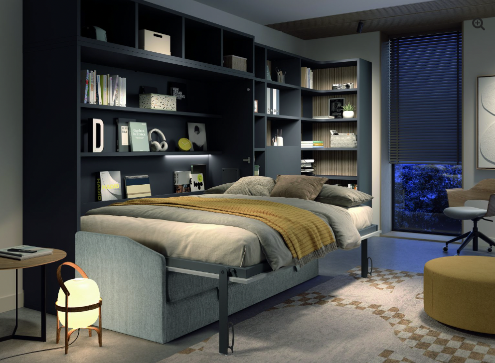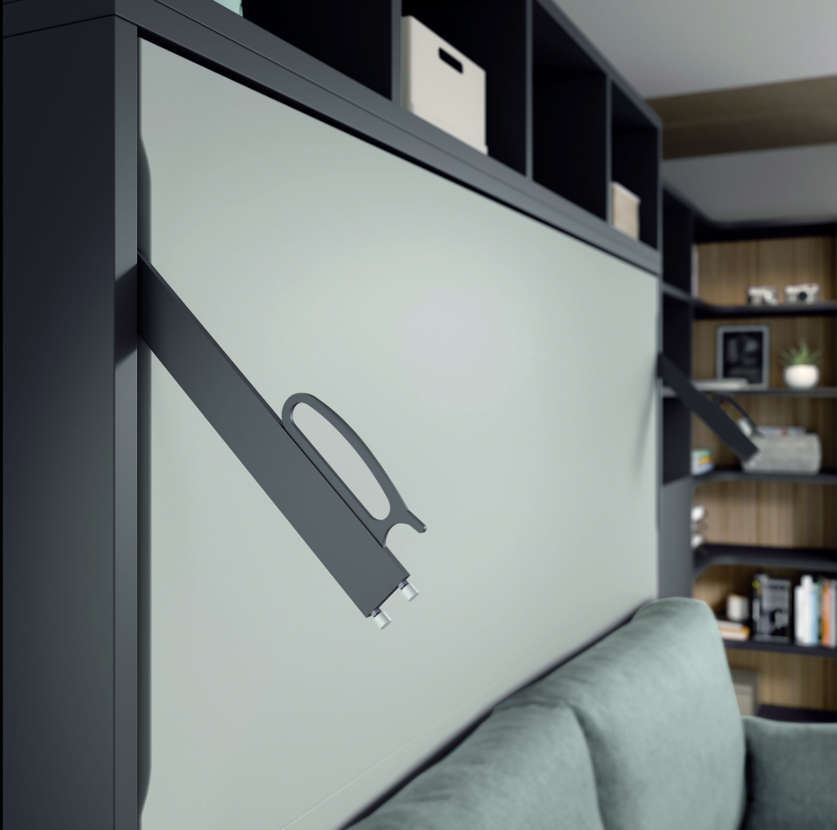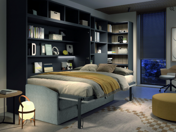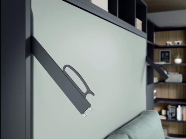 Estantería sobre cama abatible horizontal fondo 57,5 – 52,4 para cama 150 x 190 – especial alto 59,4 cm – Incremento 10%
