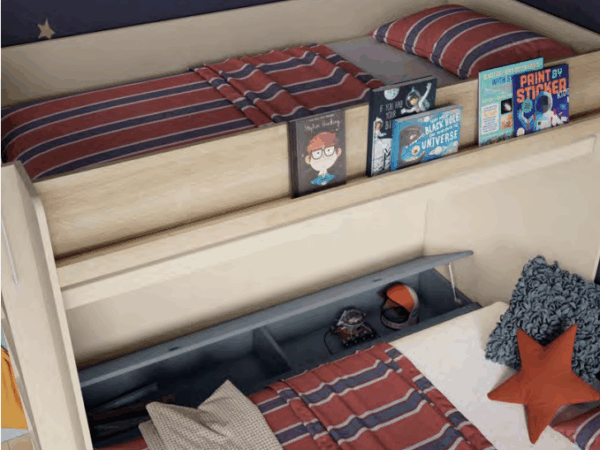 Litera con espacio inferior libre, escalera en la parte lateral izquierda – 190 x 90