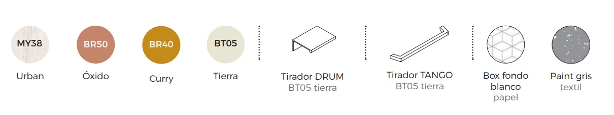 Colores composición: Urban / Óxido / Curry / Tierra.