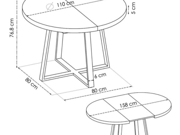 La mesa redonda extensible Duna dekit acabado en color nordic, es una mesa moderna y elegante que se adapta a cualquier espacio. La mesa tiene un tamaño de 110 cm cuando está cerrada y se extiende hasta 158cm abierta, lo que la hace perfecta para eventos familiares.