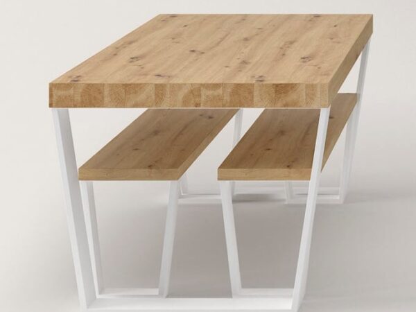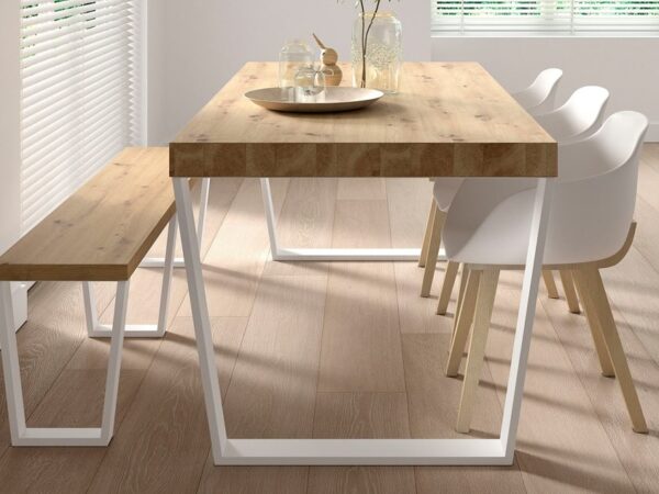 Disfruta de esta mesa con el acabado roble artesano. Laterales de cantos en grueso de ocho centímetros acabado aserrado.Con doble mecanizado para patas a los extremos o remetidas 20 cms.