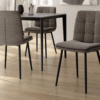 Silla con asiento y respaldo tapizados con combinación de 2 telas, patas metálicas negras.