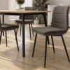 Silla de de madera con acabado en melamina y asiento tapizado.