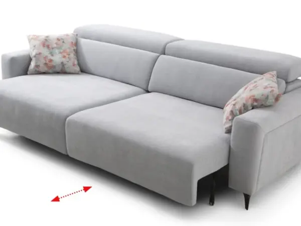 Suave por donde lo veas, este sofá está fabricado en alta densidad y firmeza + 5 cm. de viscoelástica, detalle que ofrece un confort de asiento superior y un reparto de presiones equilibrado.Cabezales abatibles cromados 105º.